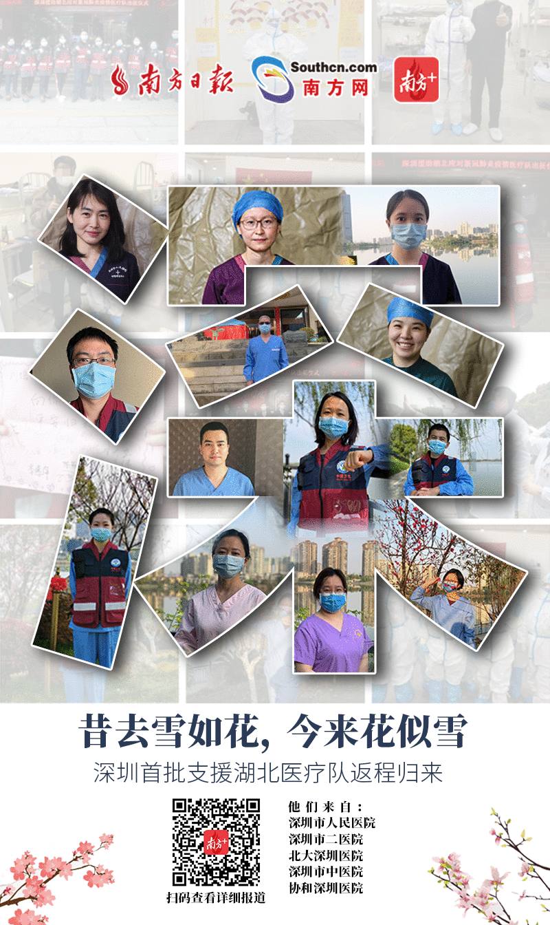 新冠病毒疫情突袭,荆楚大地成为抗击疫情的“风暴中心”。深圳此前连续派出5批医疗队77名医护人员支援湖北。如今,其中3批医疗队已完成支援任务,将于今日抵达深圳。
