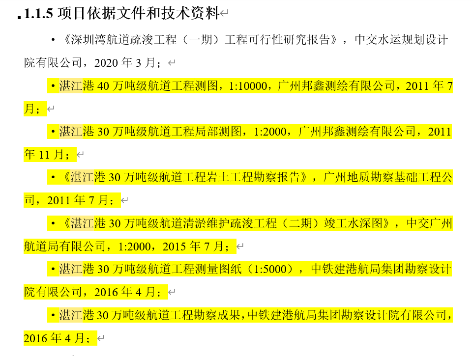 该项目的依据文件和技术资料,也多处引用借鉴了湛江港30万吨级航道工程相关报告。