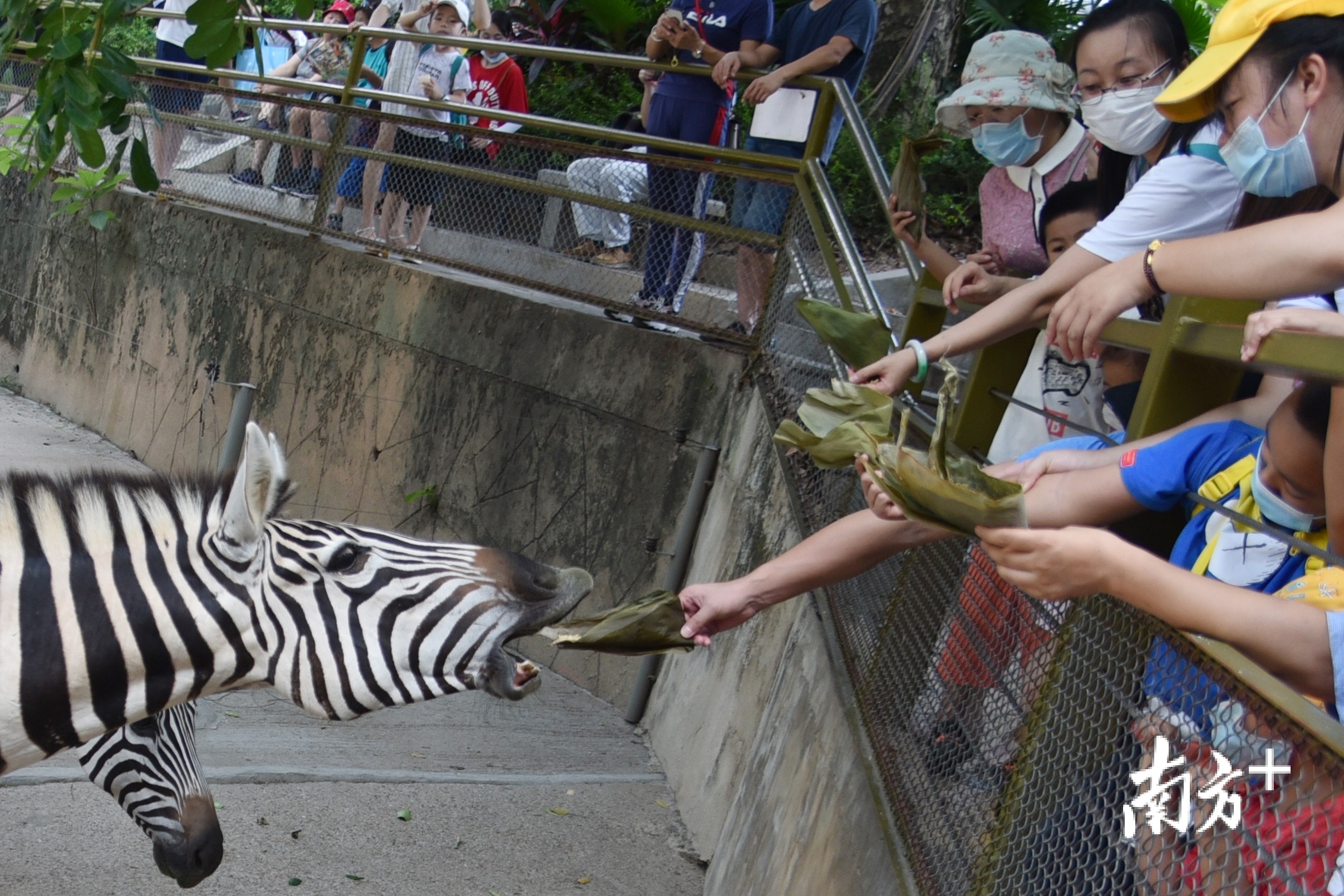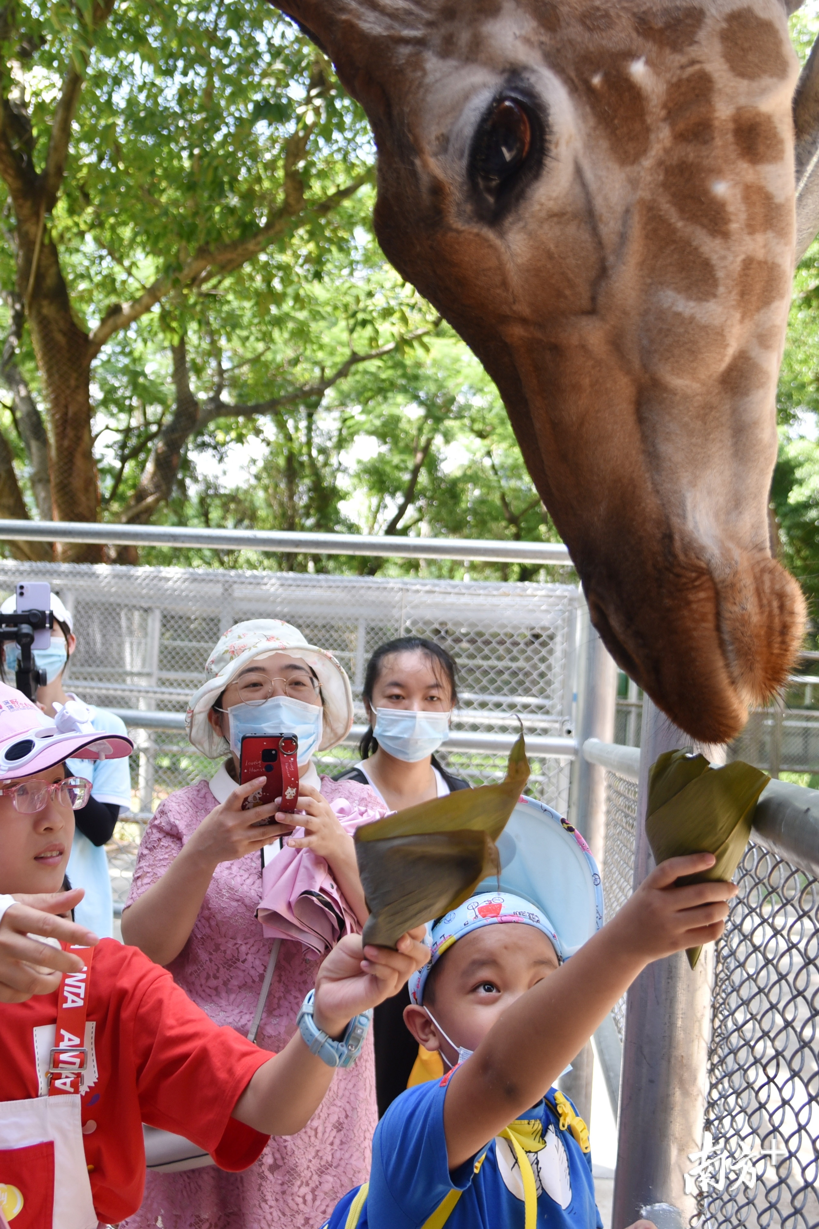 随后,小朋友在工作人员的带领下到各个展区为动物们送上美味粽子。看着动物大快朵颐,小朋友们也特别开心。