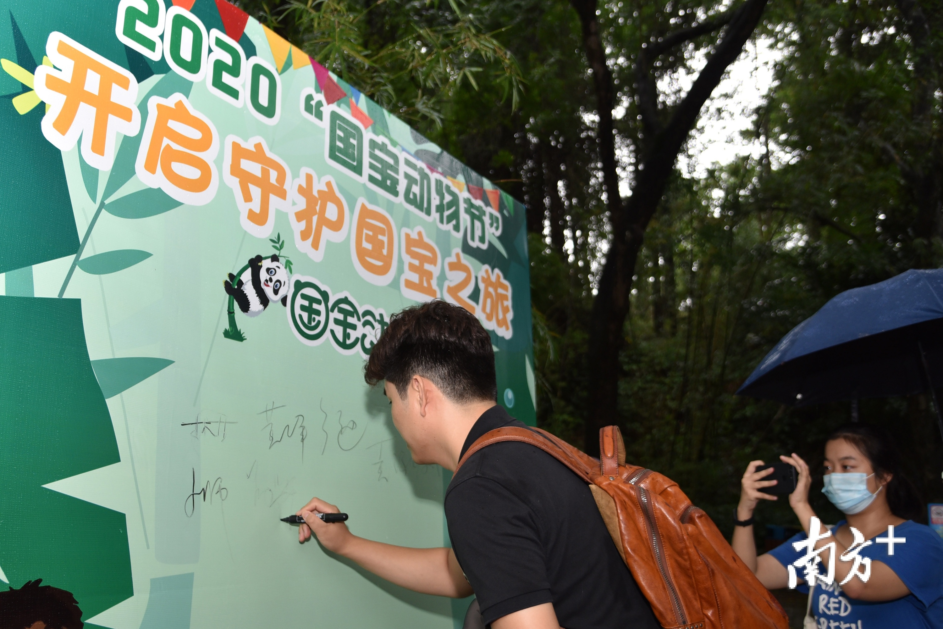 参加生日会的粉丝在展板上写下祝福语、合唱生日祝福歌,欣赏秋浜品尝生日蛋糕的憨态。尽管当天上午雨水不断,但丝毫不影响生日会气氛。