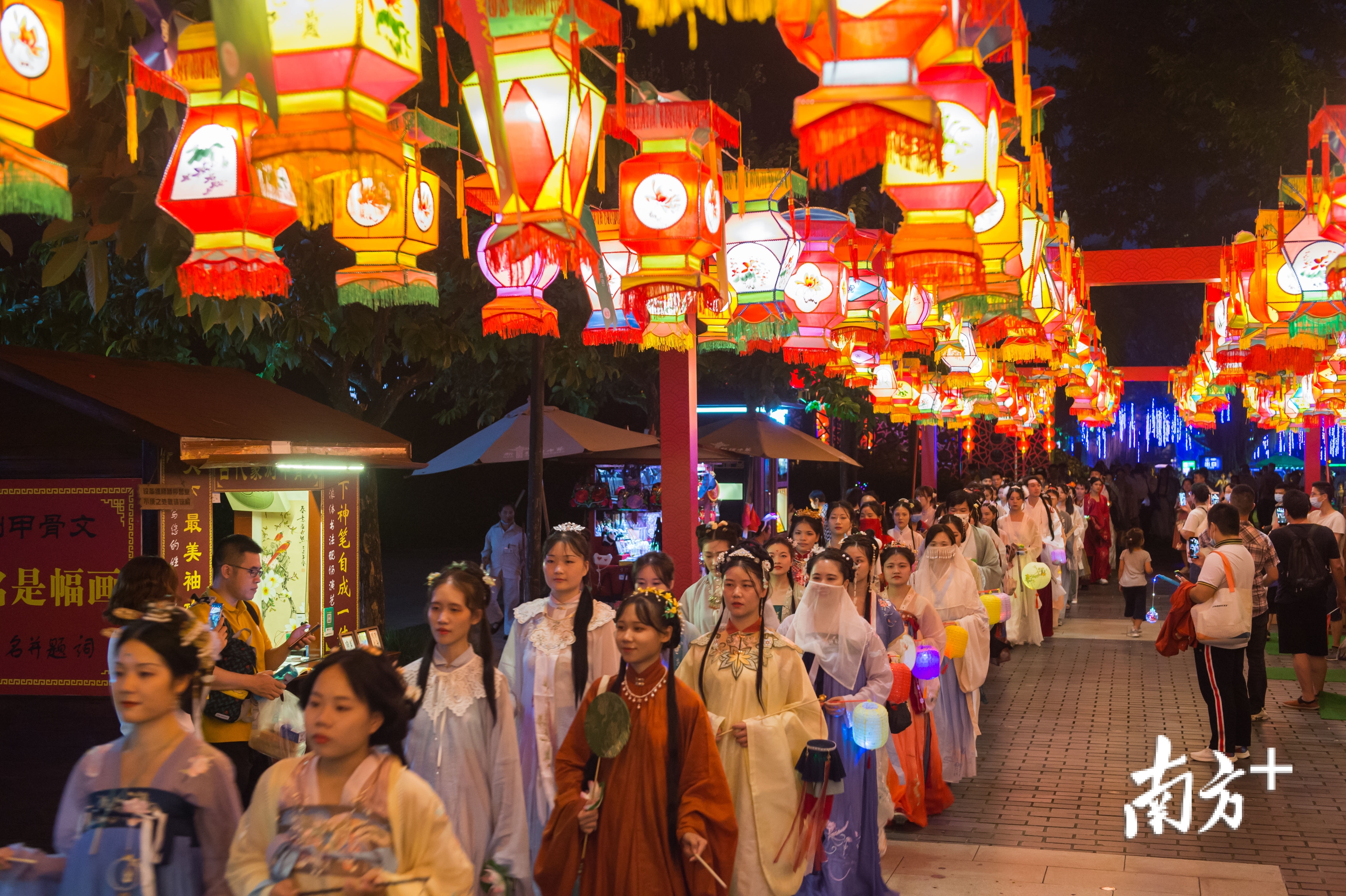夜灿如昼,花灯似海,深圳锦绣中华今年全新打造一条长1500米古色古香灯市,超3000盏宫灯、上千个灯谜还有古代杂耍与美食,吃喝玩乐一应俱全,让你一秒穿越回古代,体验中秋夜文化,领略中华传统文化的魅力。