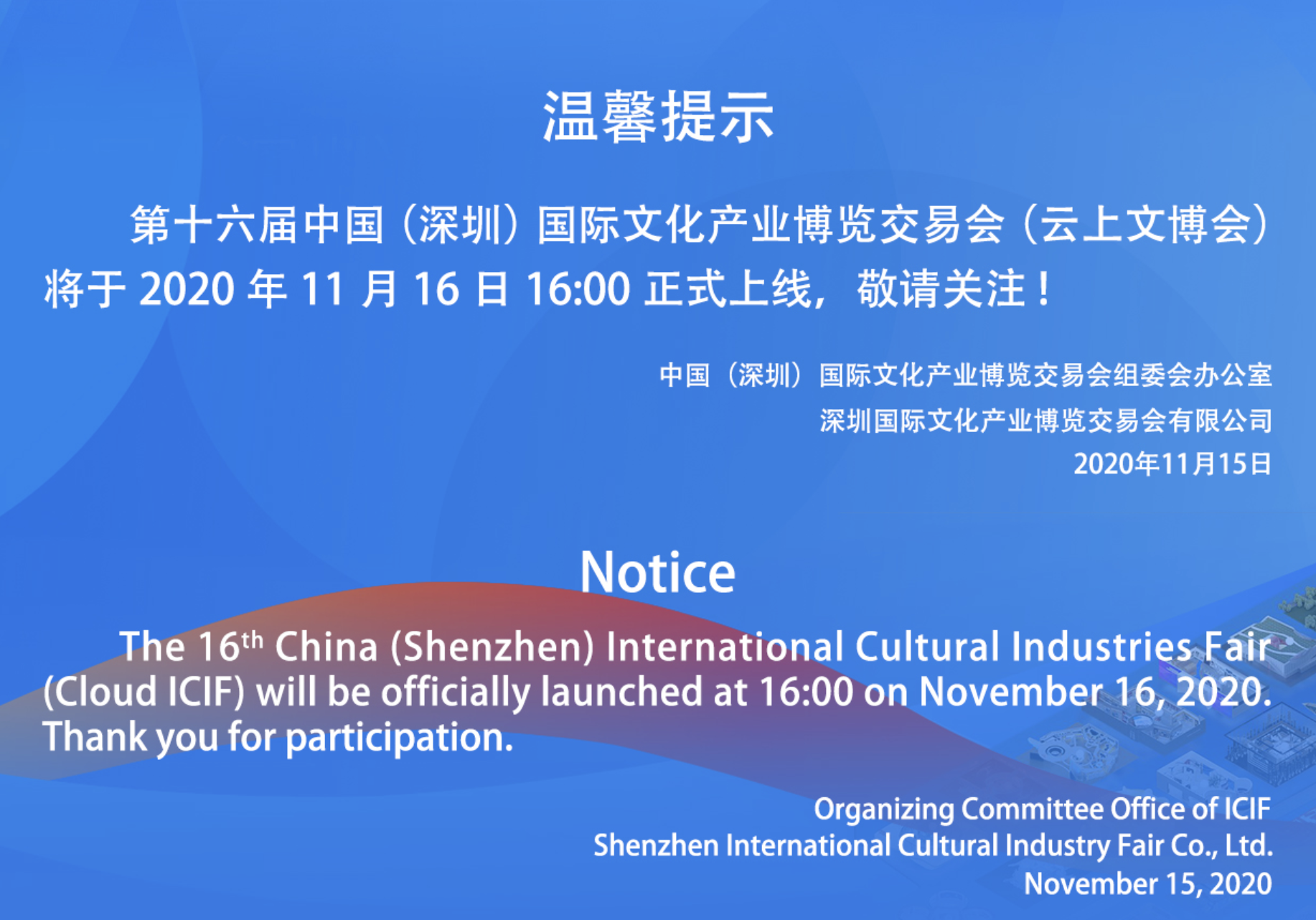 11月15日,记者获悉,第十六届深圳文博会(下称“云上文博会”)于16日16时上线,按照推动文化产业高质量发展总体要求,首届“云上文博会”力争实现不一样的精彩。