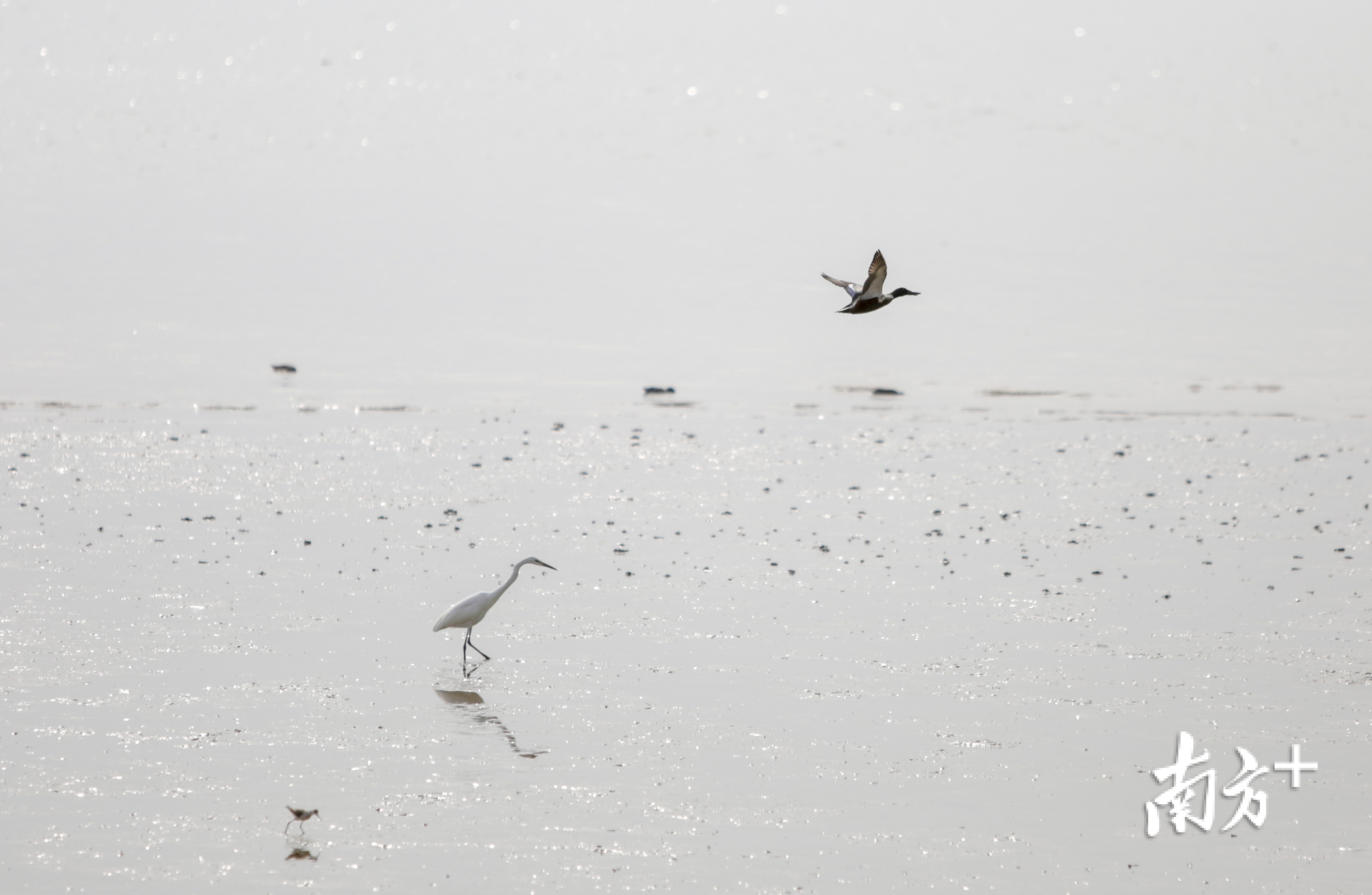 进入11月份,北方的候鸟逐渐南飞越冬,深圳湾是一些鸟儿经停的驿站。于是,有些沉寂的深圳湾,又因为它们的出现而鸟鸣啾啾、生机盎然……12月9日深圳湾的滩涂上,远远望去密密点点,那些都是候鸟。