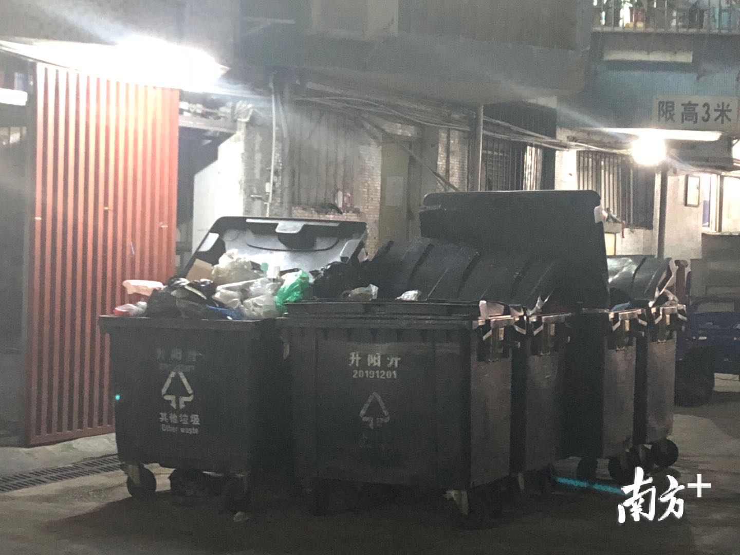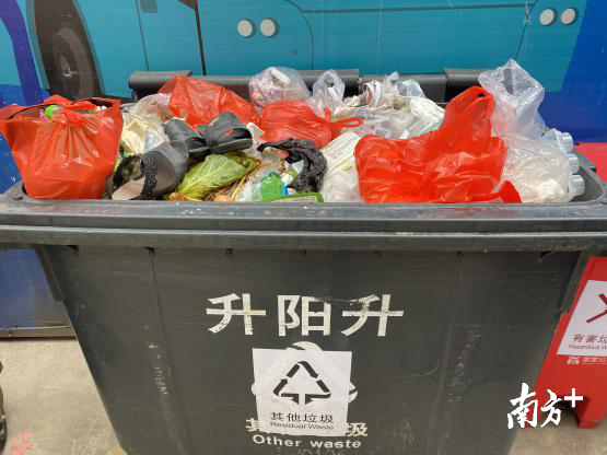 东门街道立新花园的“其他垃圾”桶内堆满了混合的垃圾。
