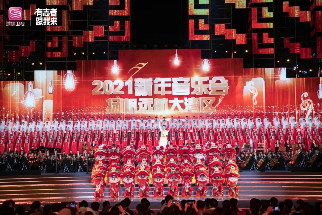 新年音乐会集中了深圳交响乐团、深圳大剧院爱乐乐团、深圳城市爱乐交响乐团200多位音乐家,深圳大学、深圳职业技术学院、北理莫斯科大学(深圳)、南方科技大学600多人合唱团,30多个各类表演团队,深圳本土艺术团的演职人员总数达3000多人,全方位展现了大湾区文艺力量的兴盛。