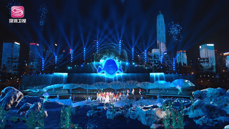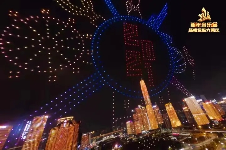 作为大湾区核心引擎城市之一,《2021新年音乐会——扬帆远航大湾区》融入了许多深圳元素和特色,以彰显粤港澳大湾区的创新活力。比如,音乐会选择在深圳市福田区市民中心广场录制,以绚烂的楼宇灯光秀作为背景,舞台与大美城市融为一体,美轮美奂,气势宏大;无人机编组飞行、扑翼飞行器、机器人、穿越机、虚拟VR等高科技手段应用与整台音乐会完美融合。
