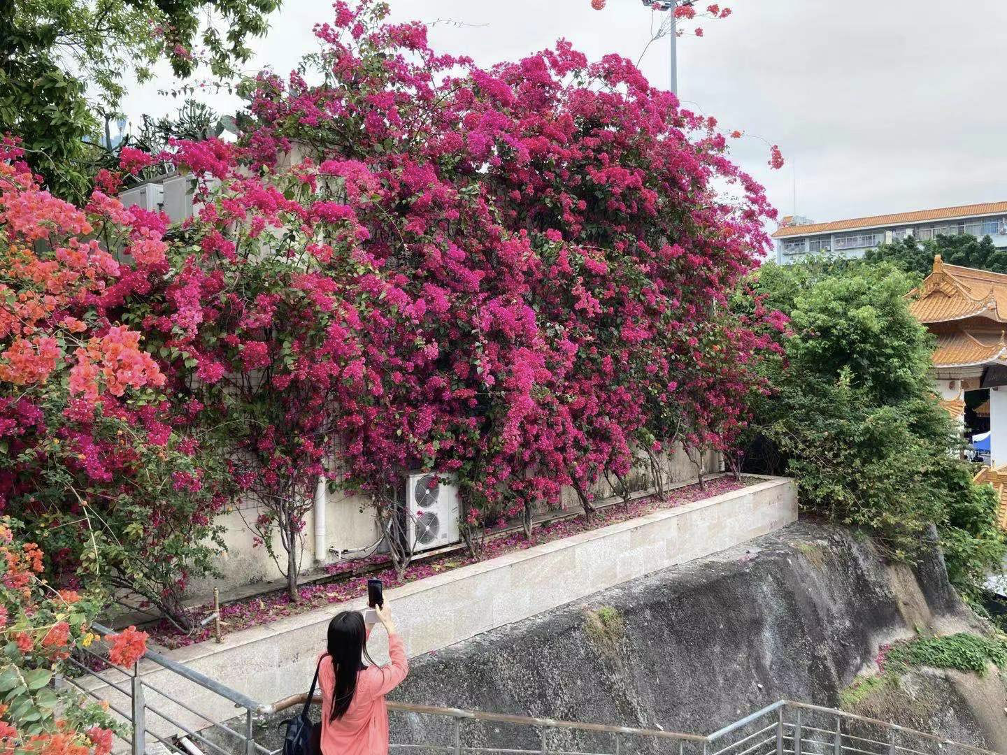 记者询问一位清洁阿姨,阿姨说这些簕杜鹃已种了好多年了,花开的时候一直有很多游客拍照。