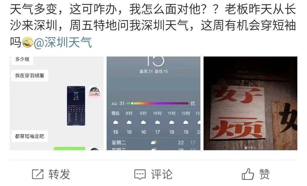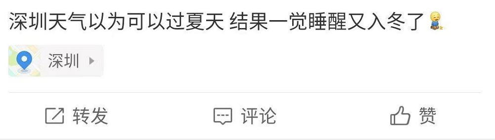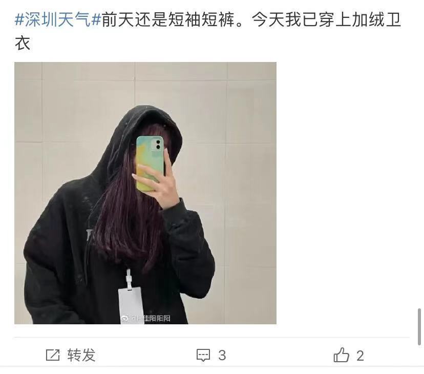 今天出门,各位深圳人都穿了啥?大棉袄、加绒卫衣都安排上了吗?