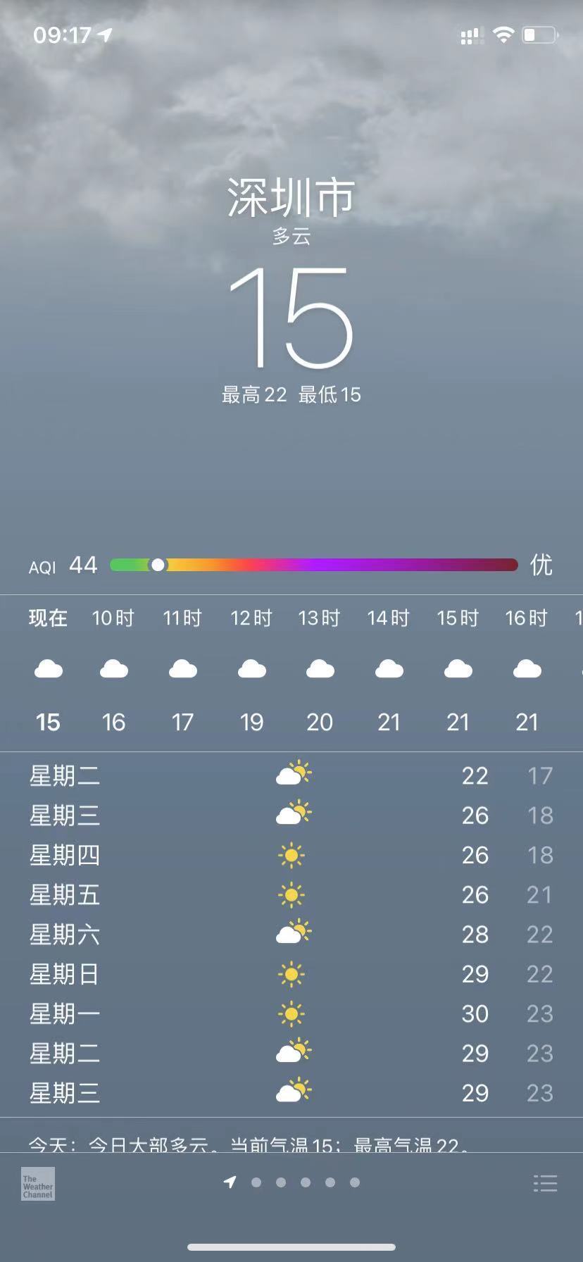 据”深圳天气“官方微博显示,今天深圳晨间气温普遍在13-15℃,而全天的气温最高也仅有19-20℃,以阴天为主。