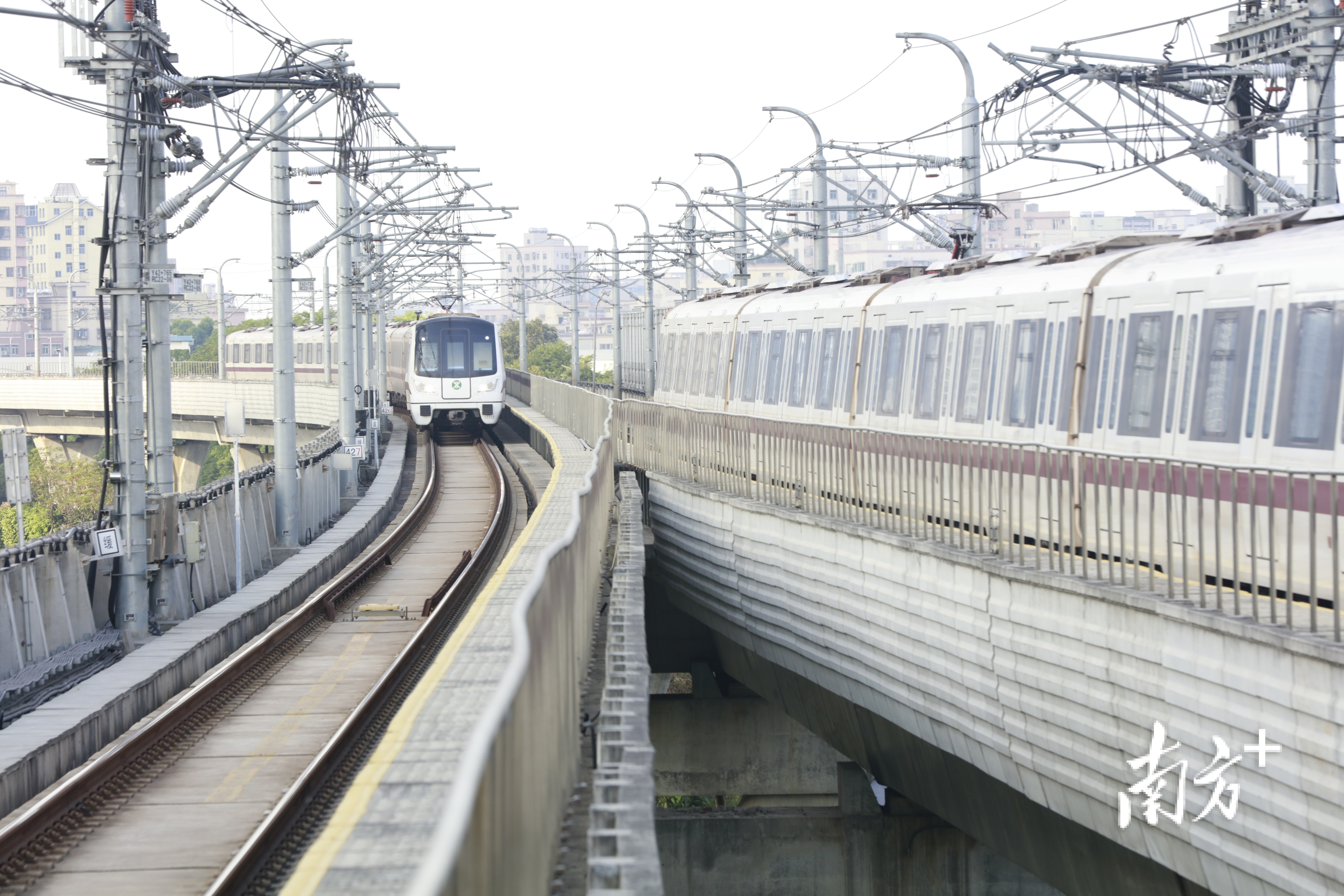 6号线则在早、晚高峰期间加开4辆上线列车,加密后科学馆至阳台山东双方向行车间隔由4分35秒压缩至3分55秒、阳台山东至松岗双方向行车间隔由9分10秒压缩至7分50秒。平峰期加开3辆列车,全线双方向行车间隔由7分15秒压缩至6分20秒,全天运能提升15.29%。