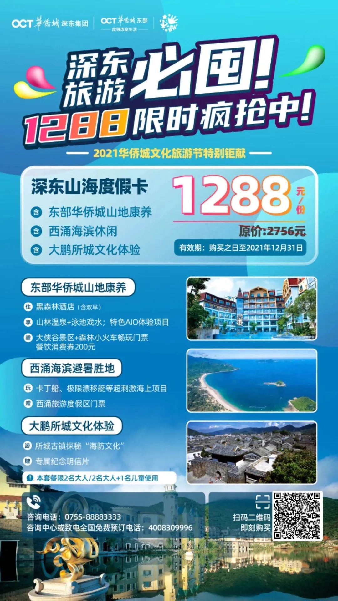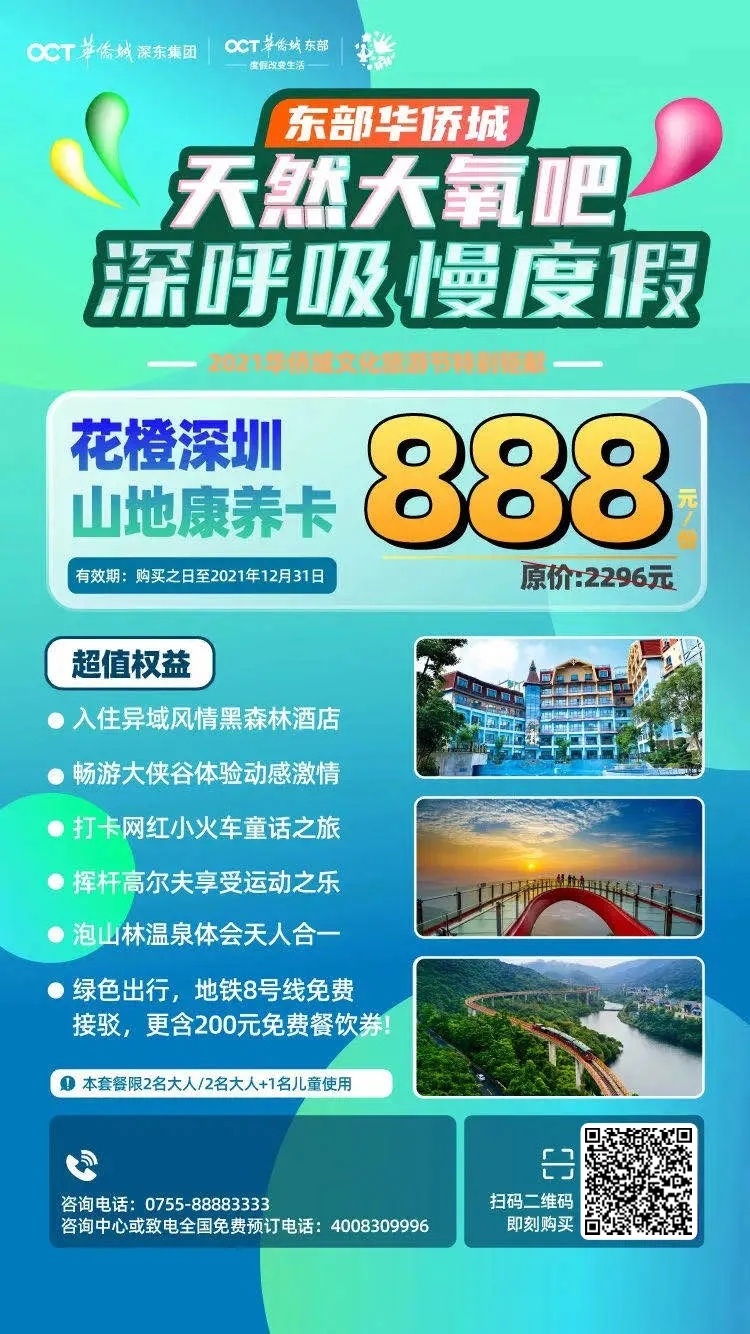暑期出行怎么能少了优惠福利呢?东部华侨城诚意推出重磅福利!畅玩刺激动感大侠谷乐园,乘坐网红小火车欣赏山林美景,舒享健康山林温泉,海山地铁站-东部华侨城的免费接驳车,拥有这张山地康养卡,让你一站式在东部华侨城大氧吧慢度假!想逃离夏日来场清凉轻度假的你,绝不能错过深东山海度假卡,去西涌体验卡丁船、漂移艇等刺激的海上戏水项目。去古镇探秘"海防文化"玩累了可以泡温泉舒缓身心,东部华侨城的黑森林酒店为你敞开大门。这个暑期开启一场康养之旅,感受绿色深呼吸生态自然风光,微度假尝鲜不容错过哦~