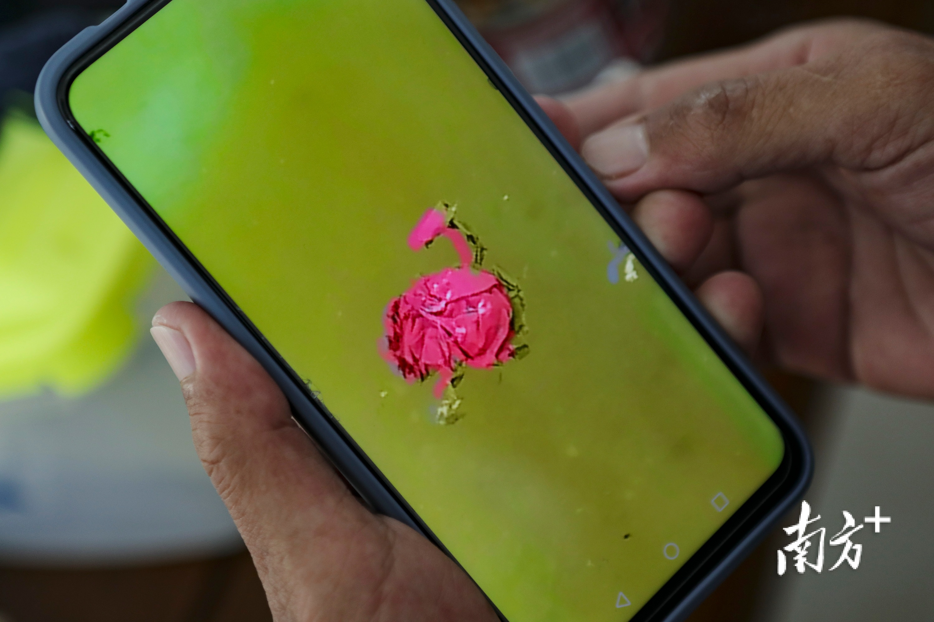 海龟保育员张凯富从绿海龟的排泄物发现塑料纸。
