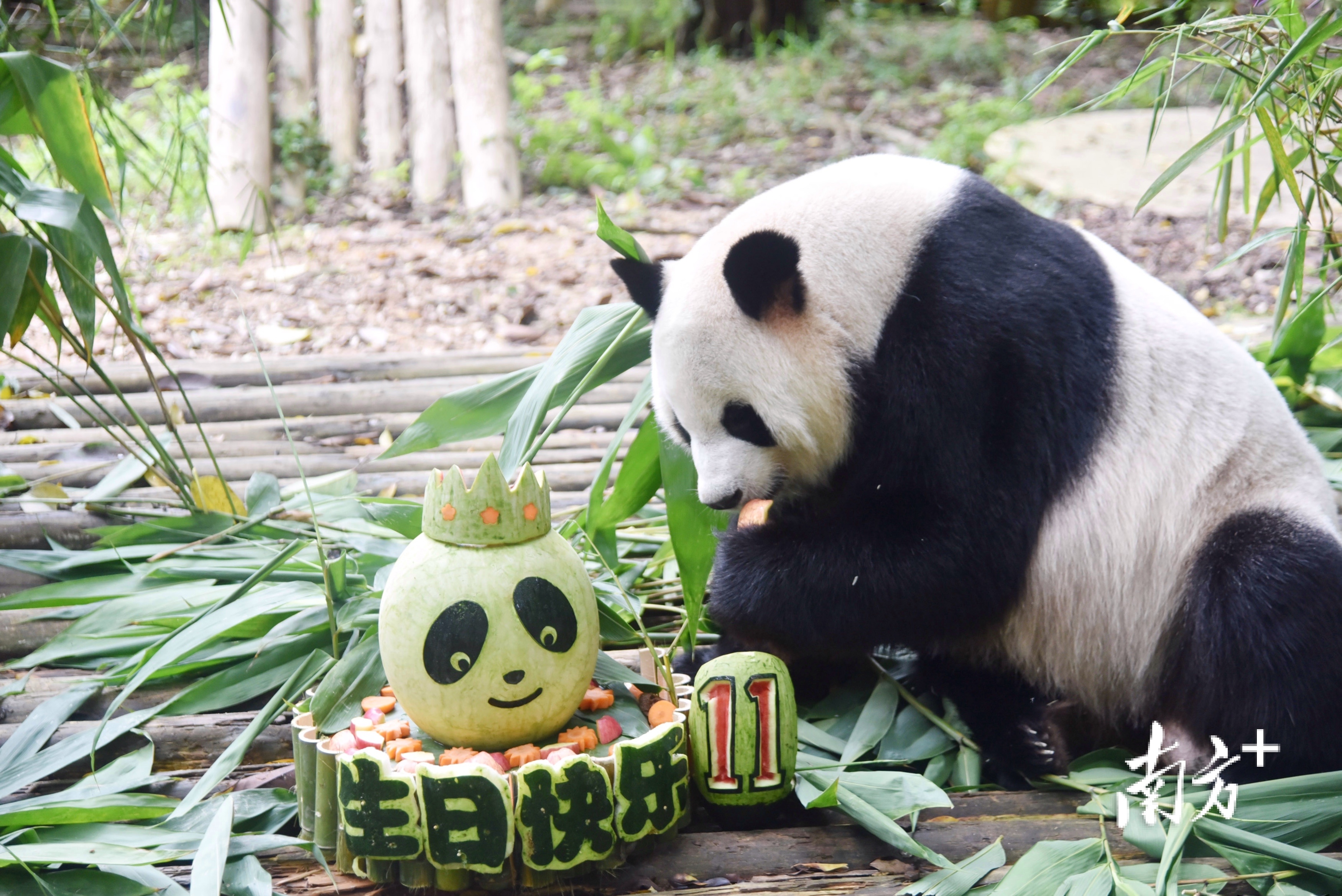“园舟,生日快乐,爱你爱你!”在大家齐声合唱的生日祝福歌声中,8月15日,大熊猫“园舟”在深圳野生动物园迎来了11周岁生日。
