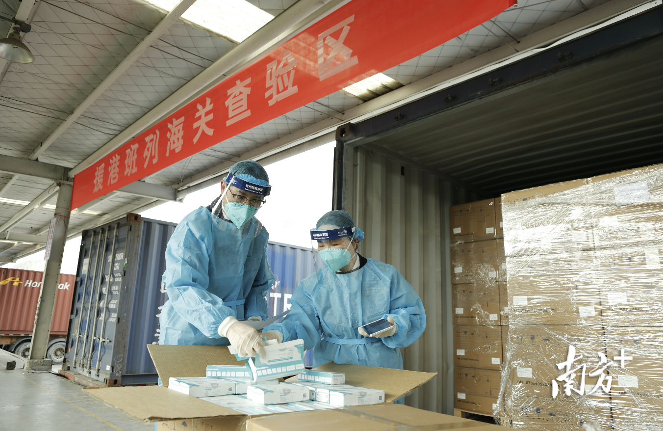 首趟班列装载的防疫物资包括新冠病毒检测试剂盒110.656万人份、防护服20000件以及其他医疗用品,该批货物到港后将于当天送往抗疫前线。