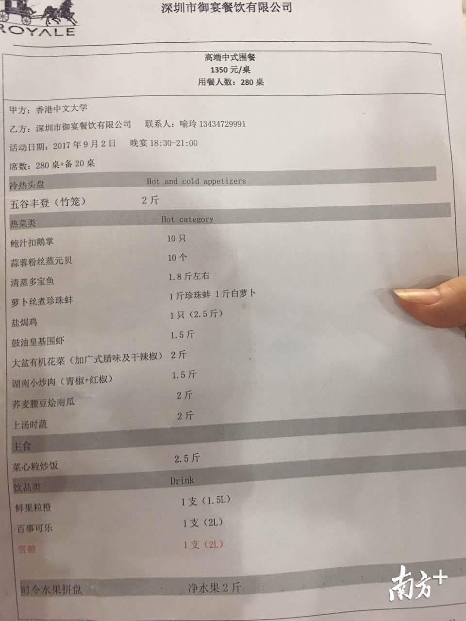 首先来给大家看一下吃货们最关心的晚宴菜品吧!菜式以粤菜为主,包括冷热头盘五谷丰登,以及10个热菜、主食、水果拼盘,饮品包括果粒橙、可乐、雪碧。具体菜单往下看,有你最爱的那道菜么?