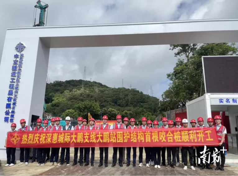 7月7日,深惠城际大鹏支线大鹏站围护结构首根咬合桩顺利开工,标志着大鹏站正式开工建设。