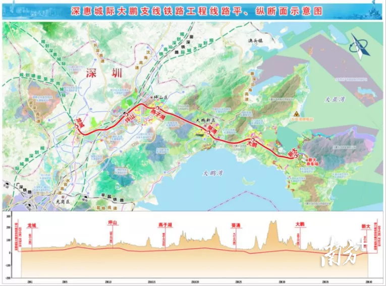 据悉,深惠城际大鹏支线工程线路起于龙岗区龙城站,止于大鹏新区新大站,途经龙岗区、坪山区、大鹏新区,全线地下敷设,线路全长39.387km。