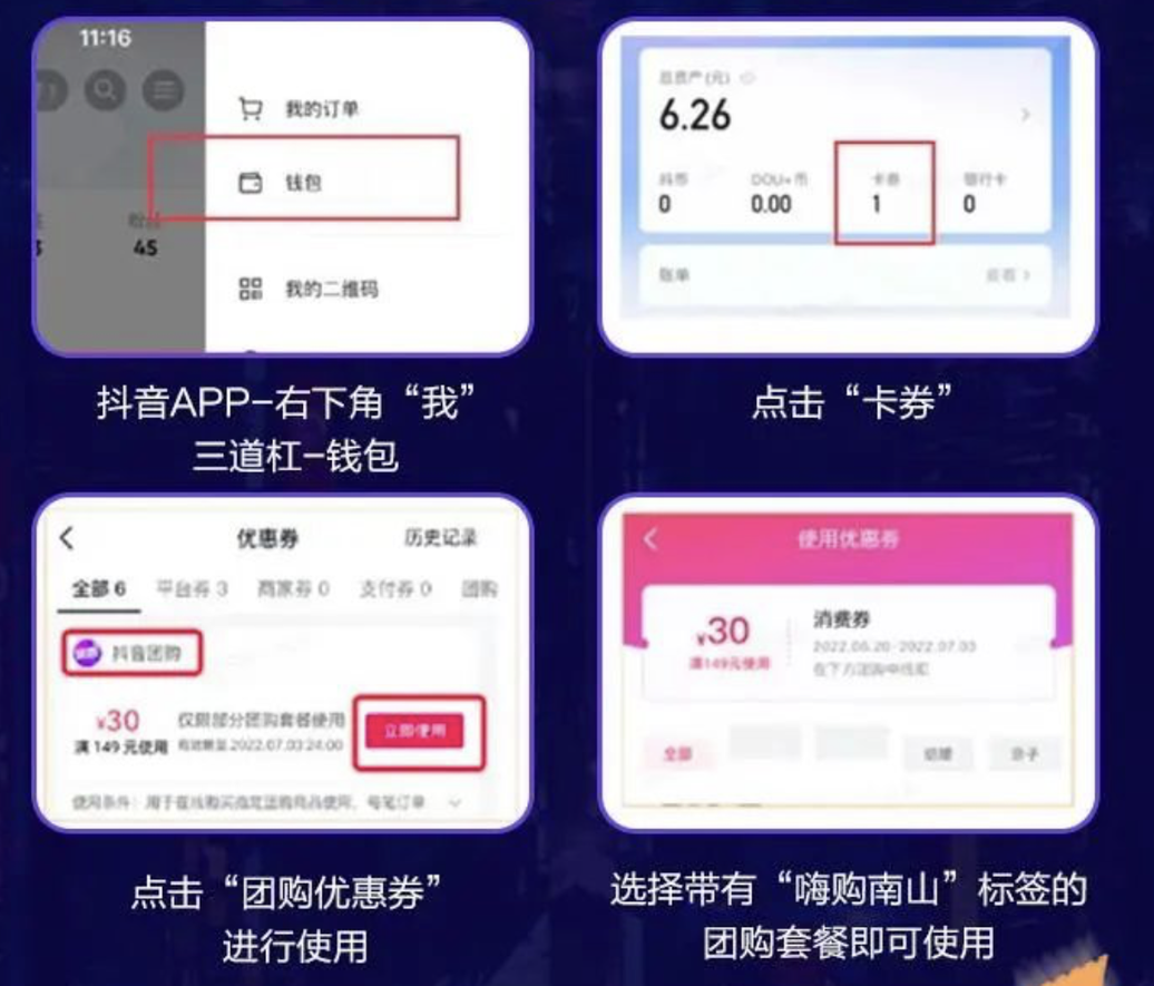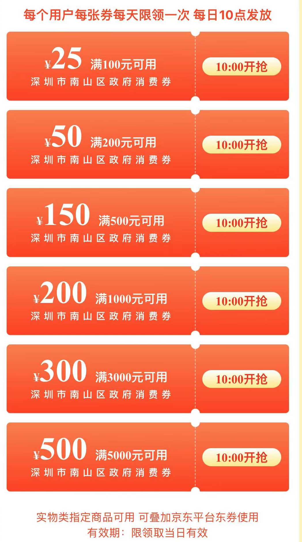 领取方式:抖音APP上搜索“嗨购南山”或者“南山消费券”,即可进入活动页面