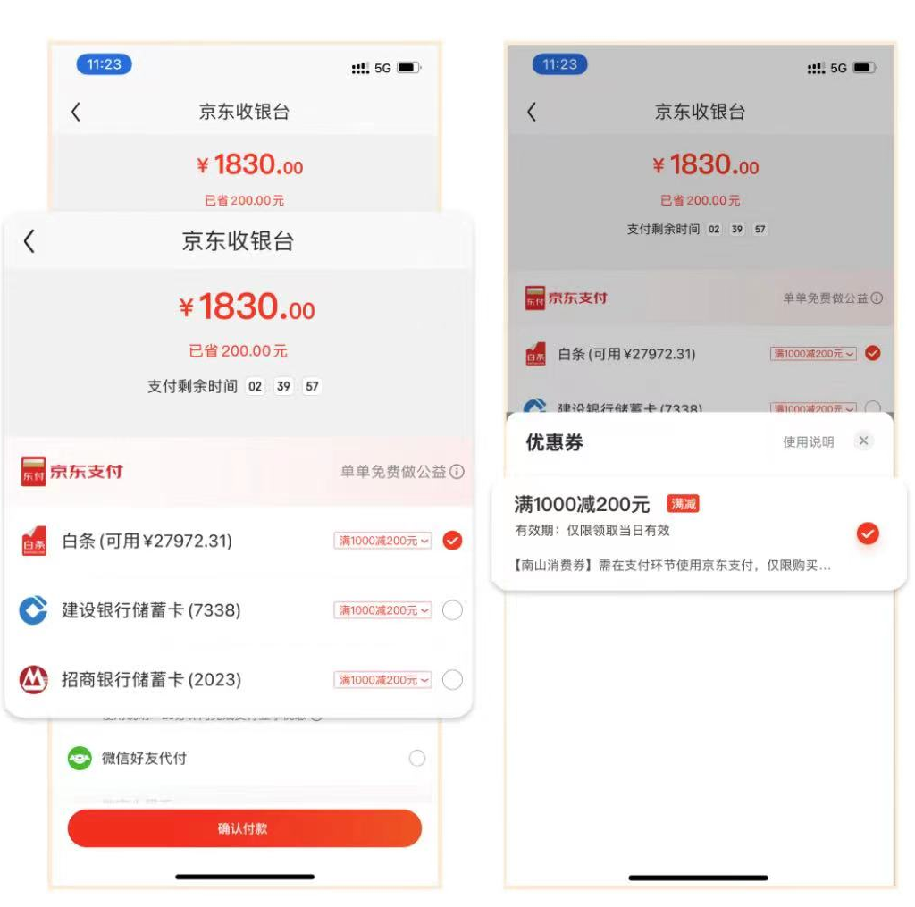 3、本活动不可与其他京东支付优惠同时享受(例如分期免息优惠),同一订单只能享受一种优惠,如同时满足多个优惠活动条件,则优先享受活动力度较大的优惠;如果多个优惠活动力度一样,则随机享受其一。