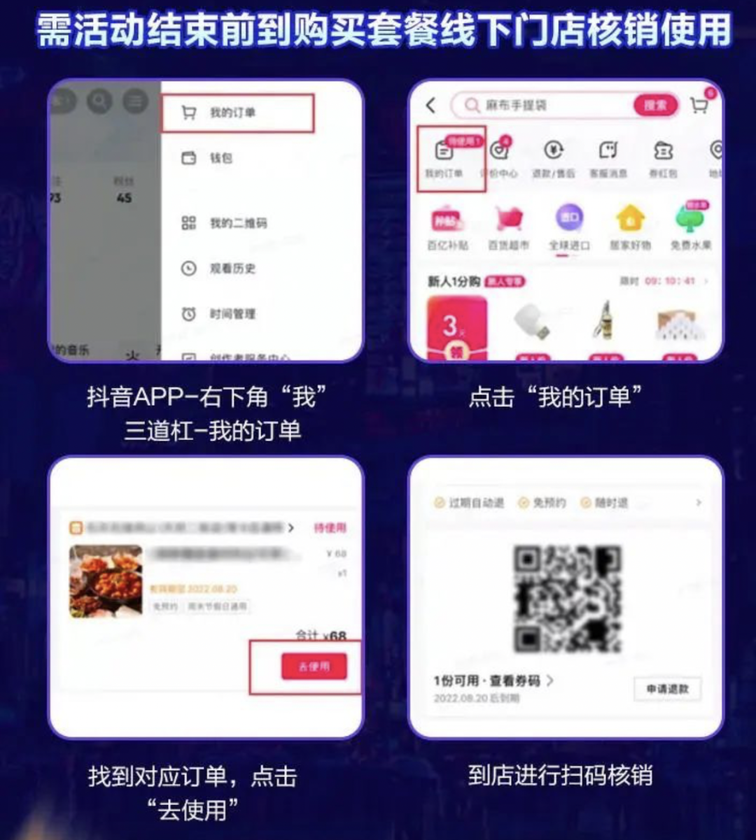 使用范围:需在有效期内使用消费券购买指定套餐,并在活动结束前到购买套餐线下门店核销使用