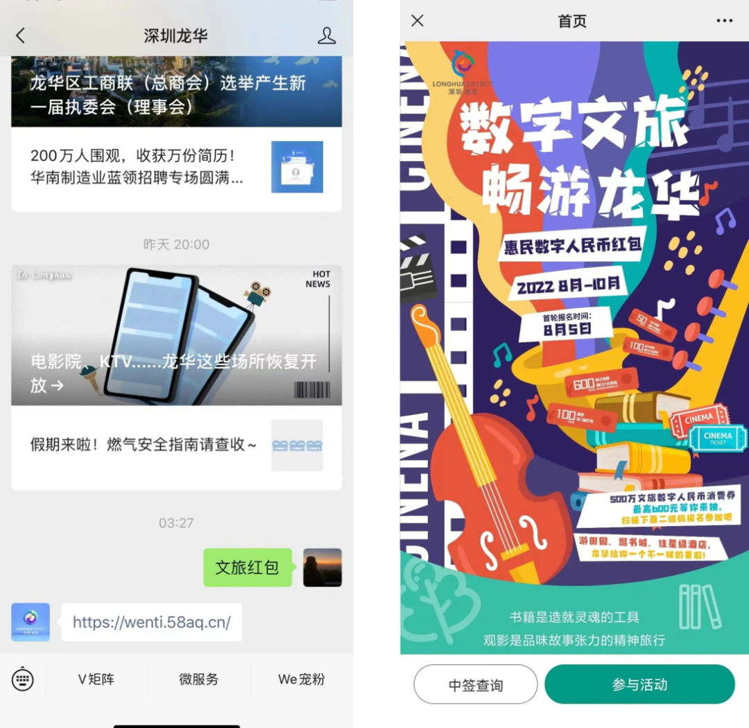 确认参与抽奖后不可更改,报名截止次日,成功中签客户将收到短信通知,消费券将以数字人民币红包形式发放到登记手机号码,用户也可首页点击