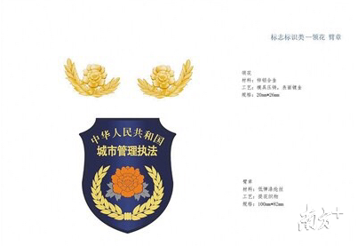 记者注意到,标志标识的设计采用了国徽、人字飘带、盾牌、牡丹花、橄榄枝等元素。制式服装及标志标识文字统一使用“城市管理执法”字样,表明着装队伍身份。