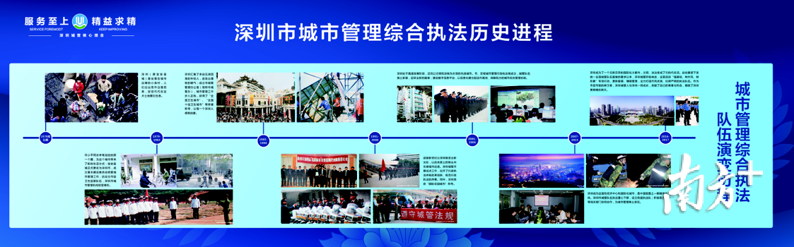 据了解,展板展示分三个阶段:1984—2001年,最初城管的服装装备没有统一规范,各区有各区特色,大家穿着不同的服装执法,到2001年—2017年的第一次换装仪式,推出深圳特色城管服饰装备,再到今天2017年,城管的服装、执法车辆整个VI视觉系统都进行了全国性的统一,这是一段非常有意思的演变历程,值得记录,值得珍藏,而这一展示,也变得重要而有意义。