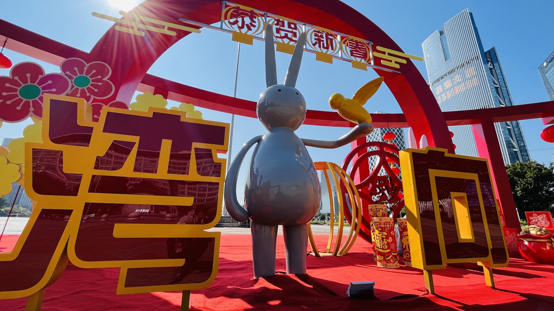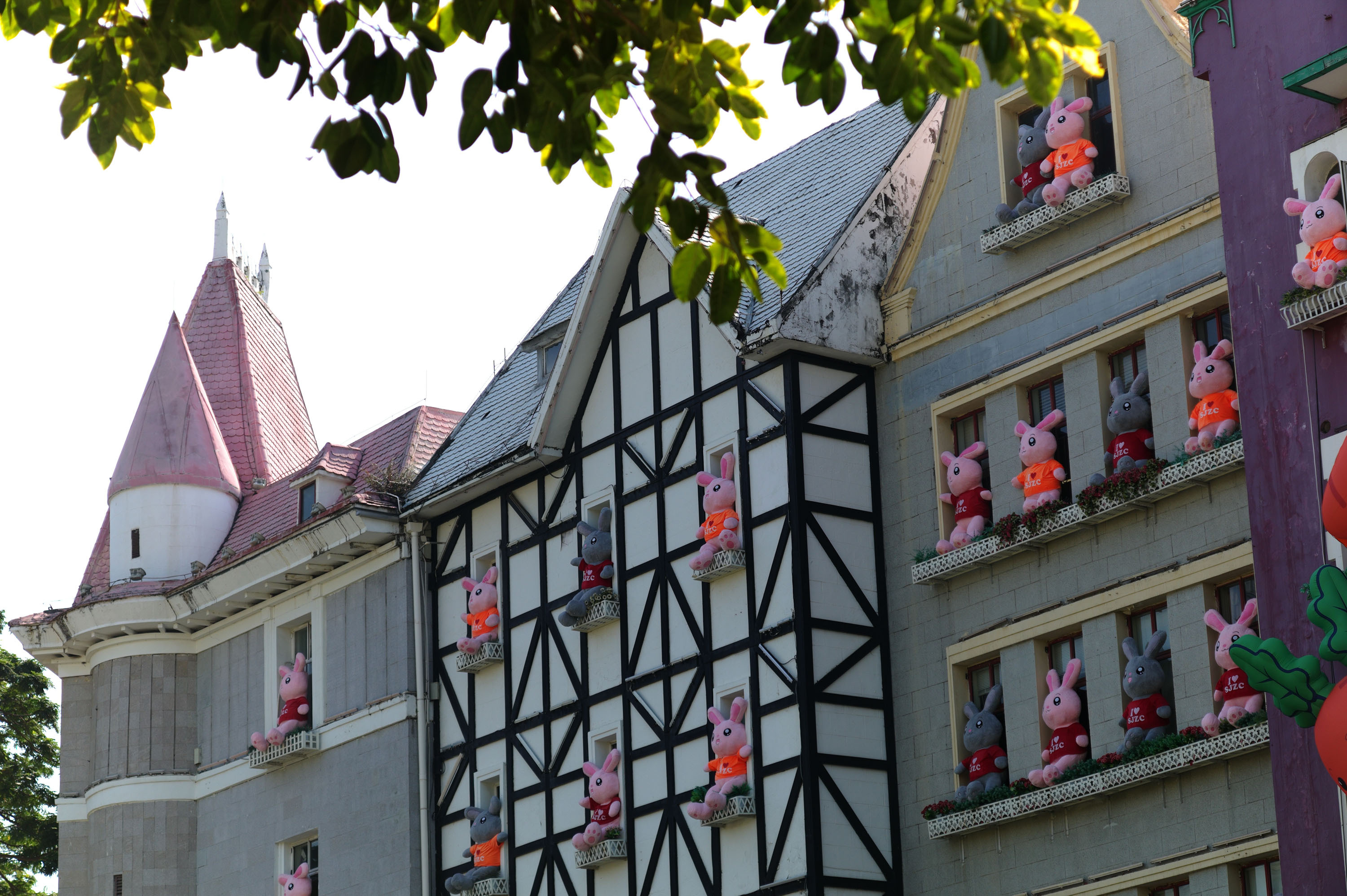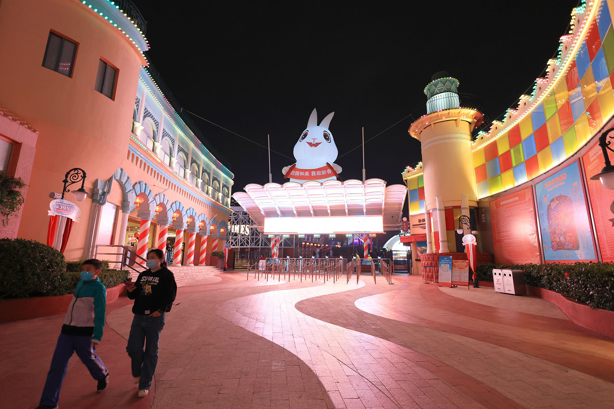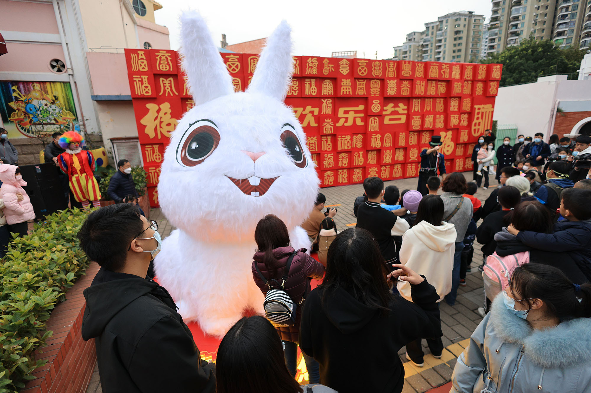 白兔子、红兔子、花兔子;不光有爱吃胡萝不的兔子,还有戴帽子的兔子、爱读书的兔子、坐在南头古城墙上晒太阳的兔子。在世界之窗的每一扇窗户外面,都坐着前来贺春的兔子。超人兔子、戴眼镜的兔子、做梦的兔子……