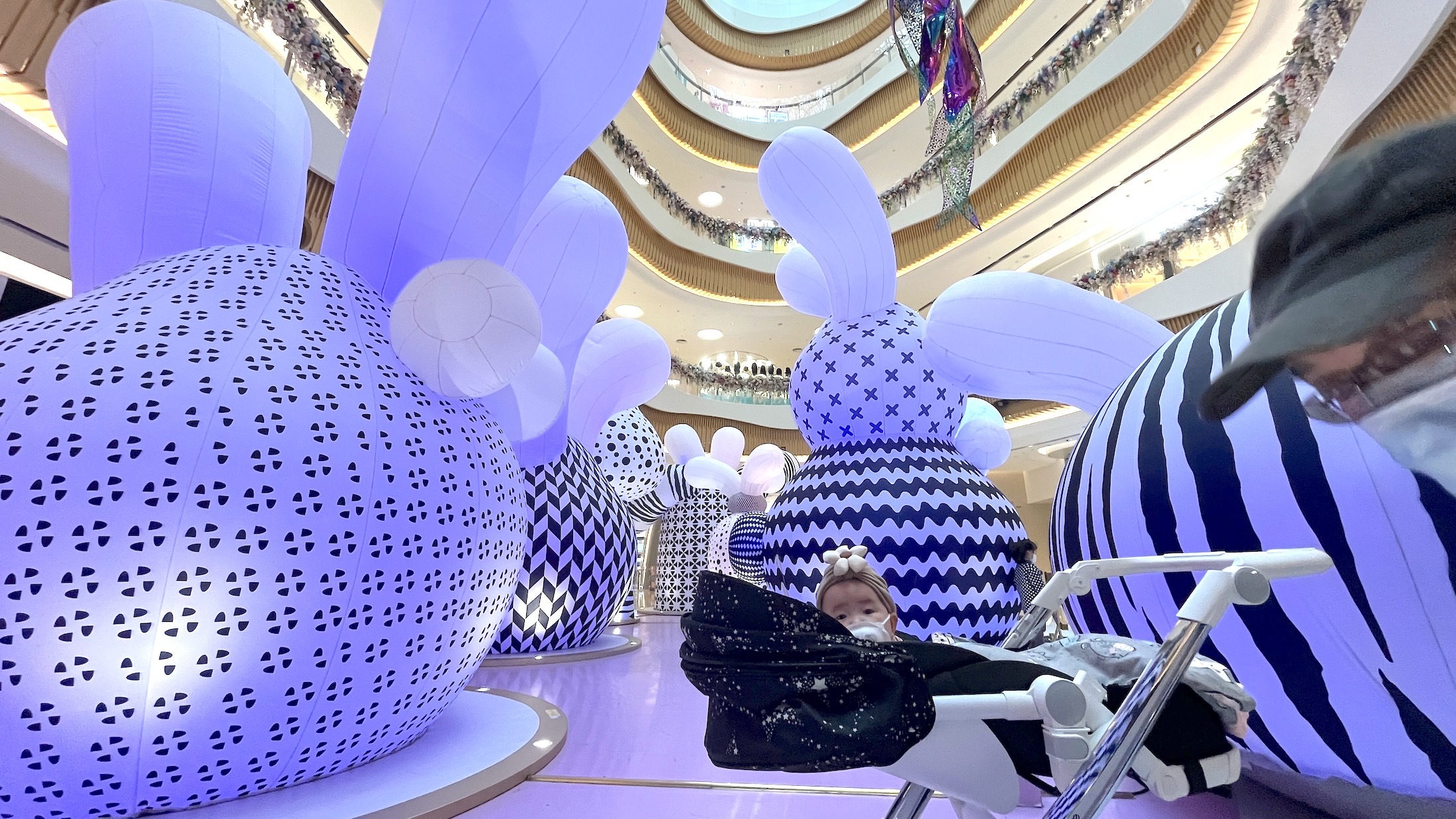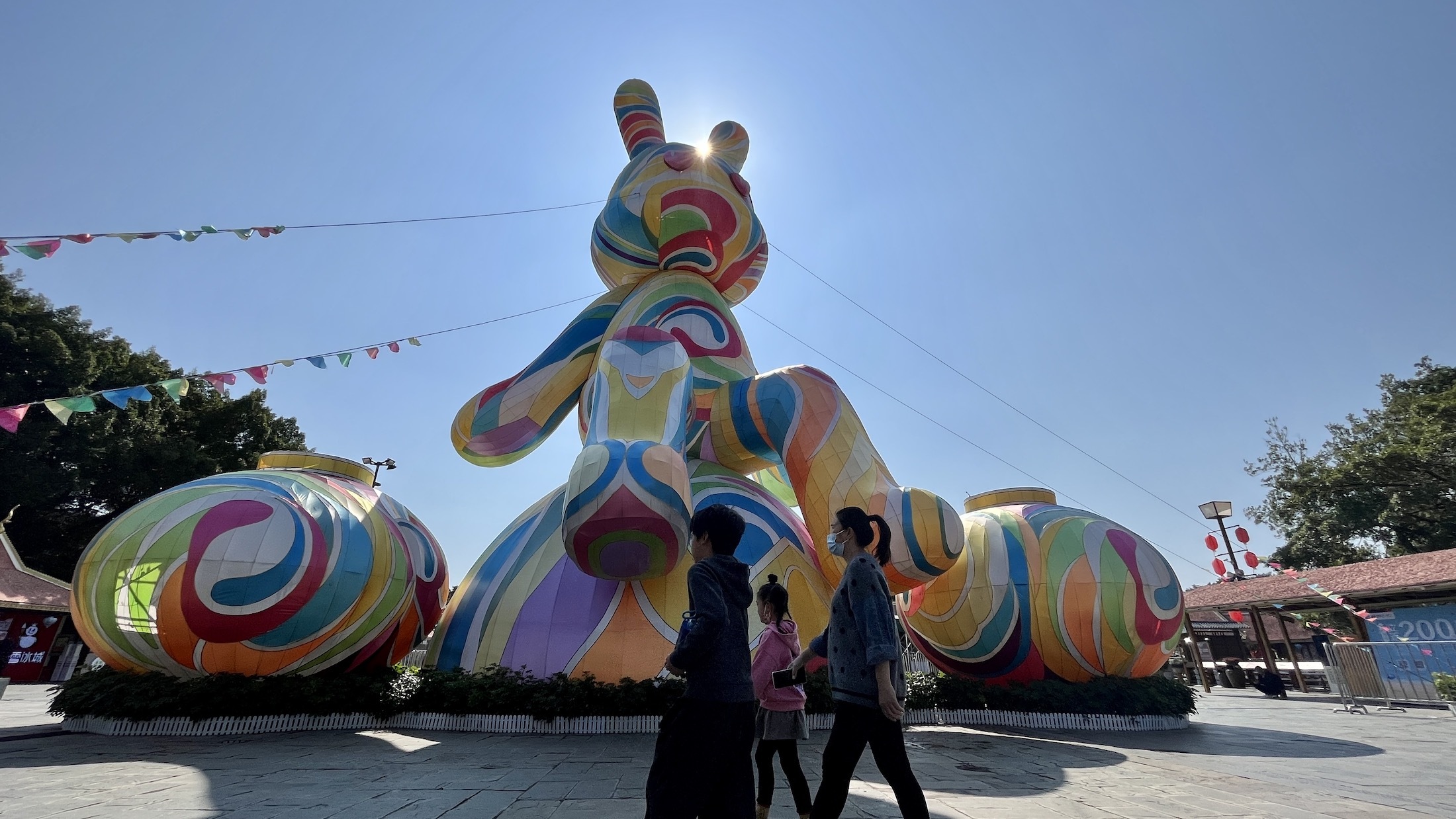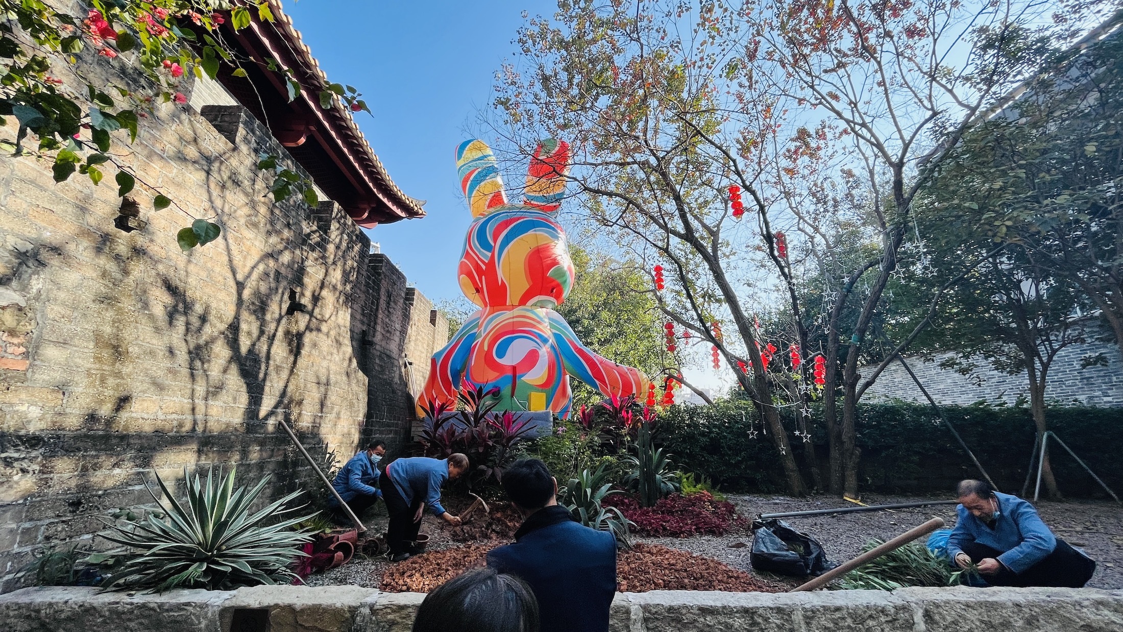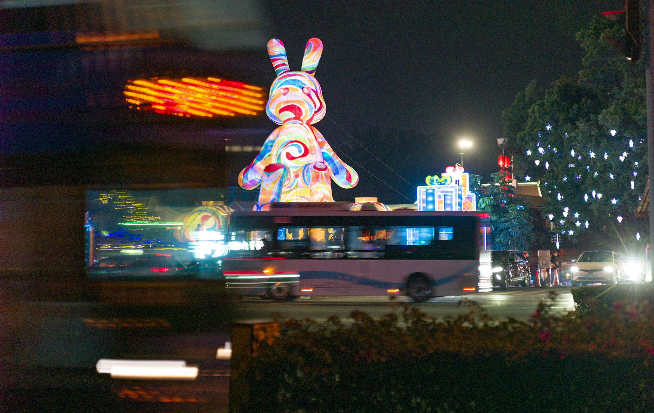 白兔子、红兔子、花兔子;不光有爱吃胡萝不的兔子,还有戴帽子的兔子、爱读书的兔子、坐在南头古城墙上晒太阳的兔子。在世界之窗的每一扇窗户外面,都坐着前来贺春的兔子。超人兔子、戴眼镜的兔子、做梦的兔子……