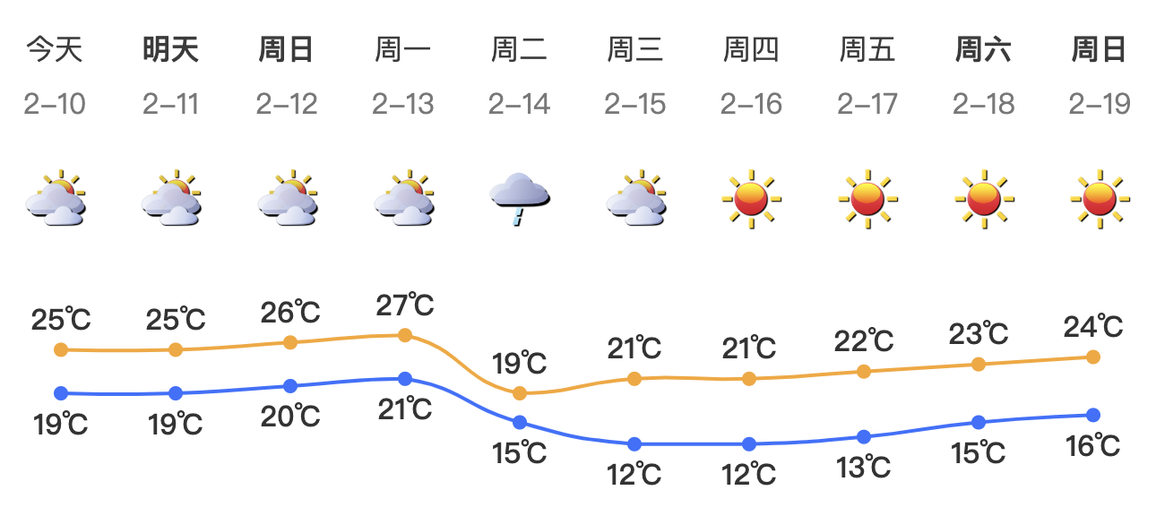 【上班天气】预计早晨6-9时,我市多云;气温19-22℃;偏东风2-3级;相对湿度75%-95%;能见度5-20公里。深圳市气象台2023年02月10日06:03发布。