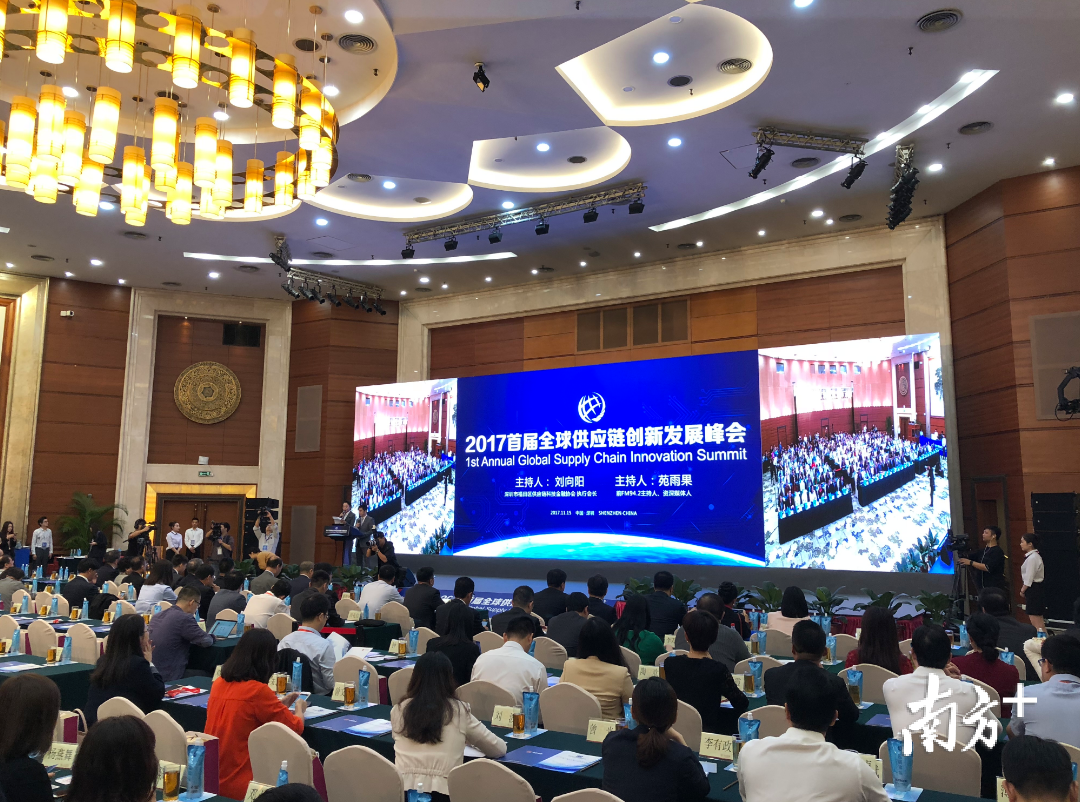 11月15日,首届全球供应链创新发展峰会在深圳五洲宾馆举办,峰会由福田区供应链科技金融协会主办。中国国际经济交流中心副理事长郑新立、全国社保基金理事会副理事长王忠民、国际商会全球理事会执行董事、中国银行原副行长张燕玲,商务部国际贸易经济合作研究院信用管理部主任韩家平、福田区政协主席李生伟、福田区人民政府副区长刘智勇、深圳市正轩投资有限公司董事长夏佐全、深圳市怡亚通供应链股份有限公司副董事长陈伟民、深圳市联合利丰供应链管理有限公司董事长黄俊武、副总裁刘向阳等多位嘉宾与会。