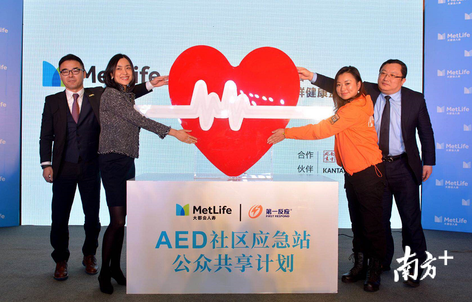 当天,大都会人寿还宣布在南京、北京、杭州、天津、沈阳和重庆等六个城市同步发起“健康日”活动,并作为第一家参与第一反应“AED社区应急站-公众共享计划”的寿险公司,在上述六个城市配置AED(体外除颤仪)设备,支持应急救援常识的推广,帮助大众在危机时刻有能力自救与互救。