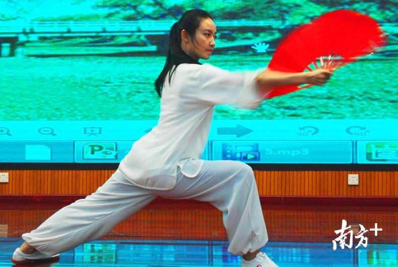 别以为老太太才能耍太极扇,看看这位罗思捷老师,硬是把太极扇舞出了青春的朝气。