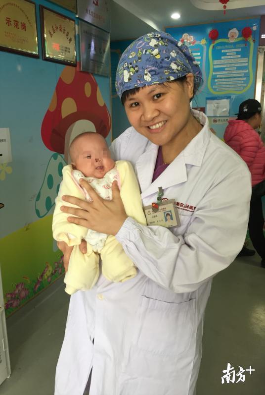 现在,130多天过去了,宝宝已经成长到7斤多,健康状况很好,可以出院回家了。科室的医护人员不分日夜轮班照护宝宝,临出院的时候,他们有些难舍,一直送到楼道。
