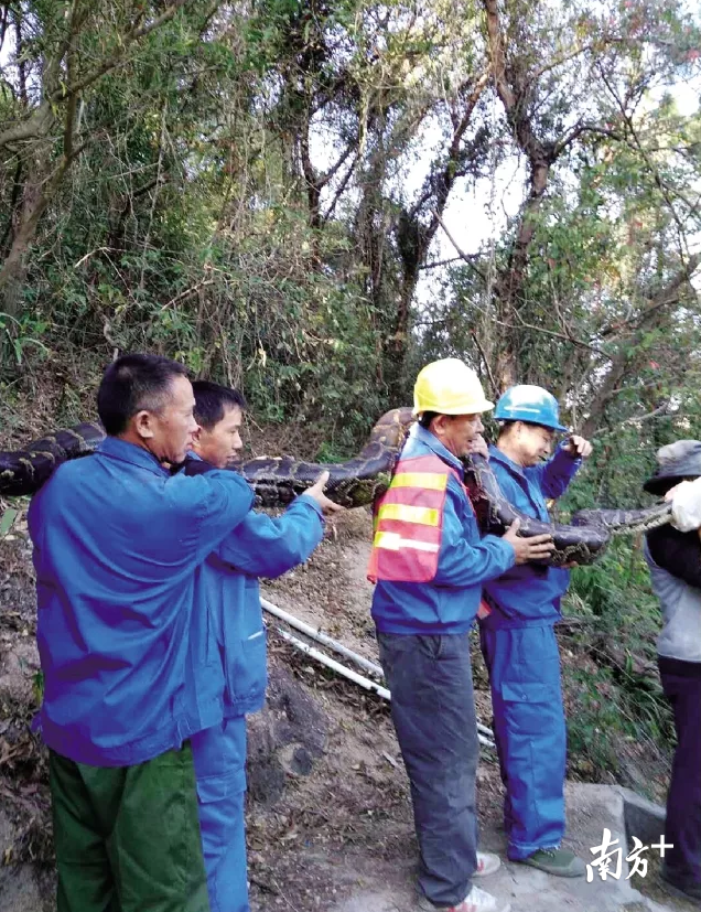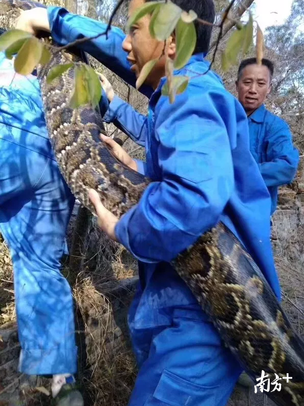 20日下午3时,大蟒蛇再次出现在洞口,相关部门立即联系深圳市野生动物救护中心,该中心工作人员迅速赶到现场,将其抓捕。