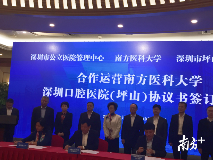 深圳目前尚无市属公立口腔专科医院,但这一空白将很快被填补。12月28日,深圳市公立医院管理中心、南方医科大学和深圳市坪山区人民政府合作运营南方医科大学深圳口腔医院(坪山)签署仪式在五洲宾馆隆重举行,三方将共同建设运营南医大深圳口腔医院。据悉,医院将于明年10月底正式试运营。