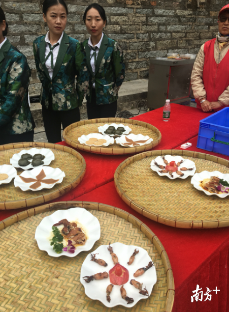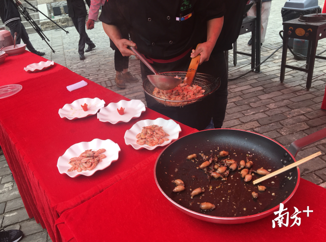1月27日下午,大鹏所城北门广场变身吃货的天堂,候选26道美味悉数亮相,来自鹏城饭馆、鹏城人家、青瓦苑和鹿嘴山庄的大厨们使出浑身解数,精心烹制出15道候选美食,同时主办方还现场提供大鹏濑粉仔、花生糕、艾果、青团仔、本地盆菜、白灼红虾仔、炸猪肉、姜麻汁、米饼、海葡萄等与爱吃的市民一同分享这自大鹏半岛的特色美味,8位专家评委更是现场品鉴。