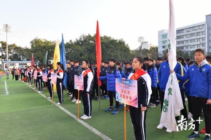 绿茵场上,罗湖的校园足球队员蓄势待发。2月1日上午,2018年中国中学生足球协会杯初中男子组比赛在翠园中学初中部正式开幕。来自全国8个省市直辖市的16支优秀队伍在运动场的预备区上整齐列队,精神抖擞。从2月1日至8日,16支初中队伍将在罗湖先后开展六轮赛事,通过小组赛、交叉赛、半决赛、决赛及名次赛,一较高低,逐出最强队伍。