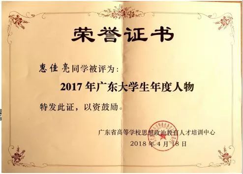 ▲惠佳亮广东省2017年大学生年度人物