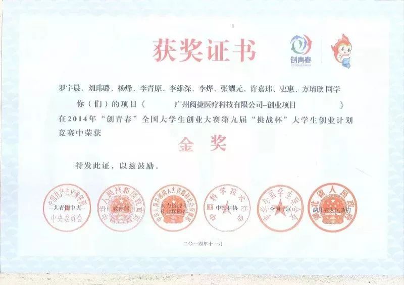 ▲“创青春”全国大学生创业大赛第九届挑战杯大学生创业大赛金奖