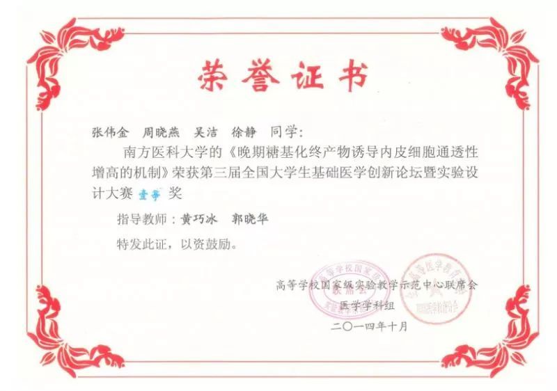 ▲第三届全国大学生基础医学创新论坛暨实验设计大赛全国一等奖