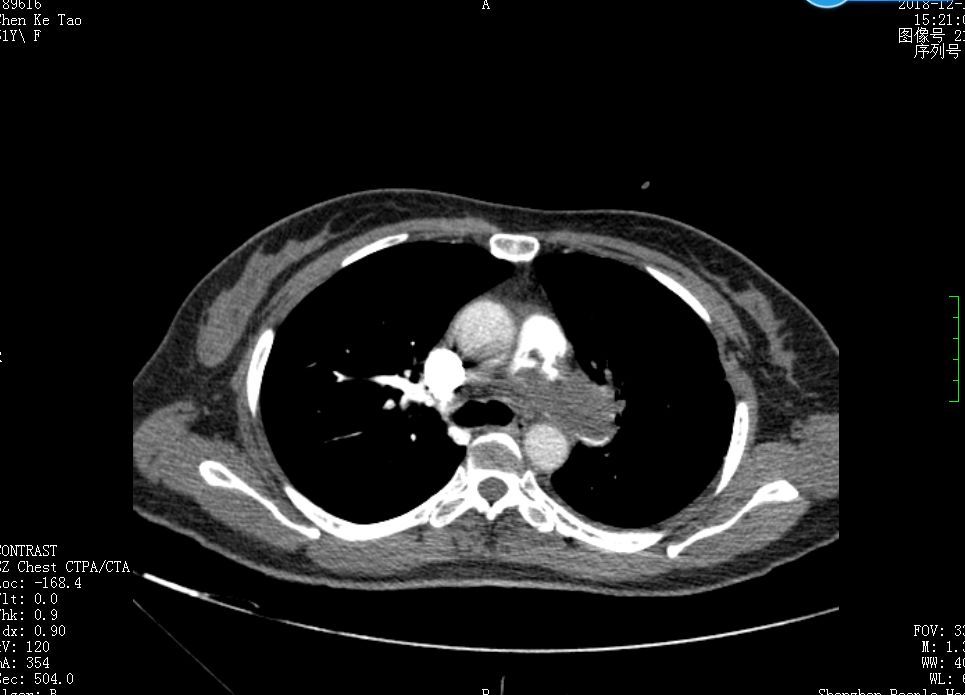 2018年9月,51岁的陈女士(化名)无明显诱因出现咳嗽伴左侧胸痛,在当地医院就诊,被当诊断为为肺栓塞。