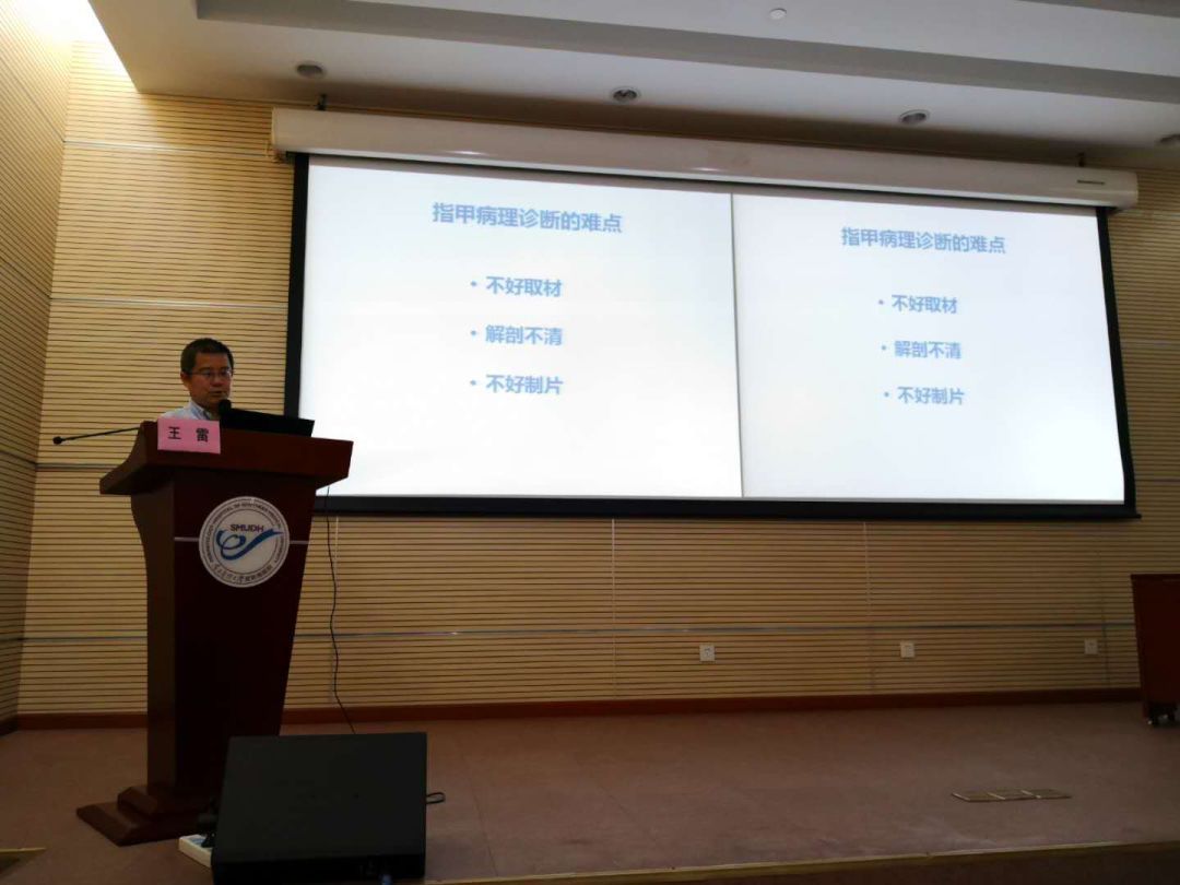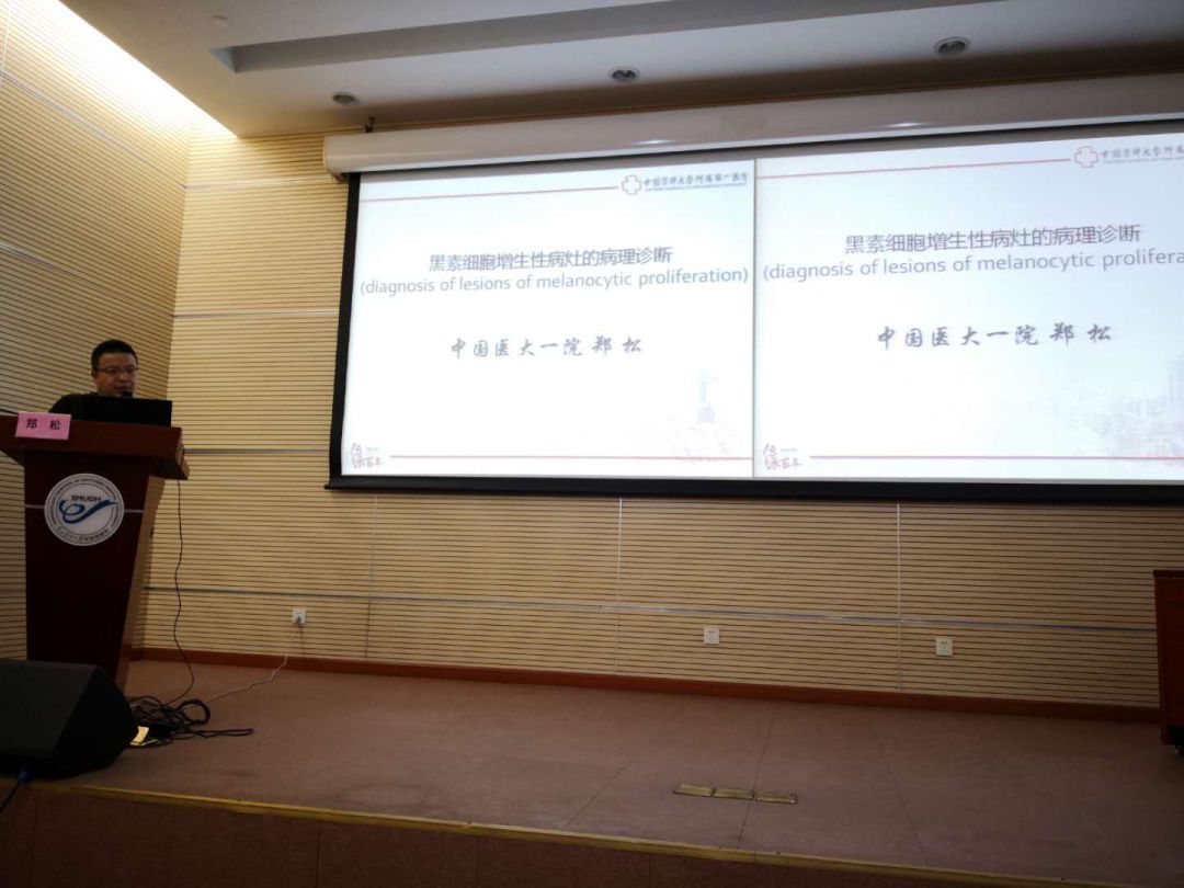 中国医科大学附属第一医院郑松教授讲解“黑素细胞增生性病灶的病理诊断”,使学员对各种色素痣及黑色素瘤的临床及病理表现有了进一步认识。
