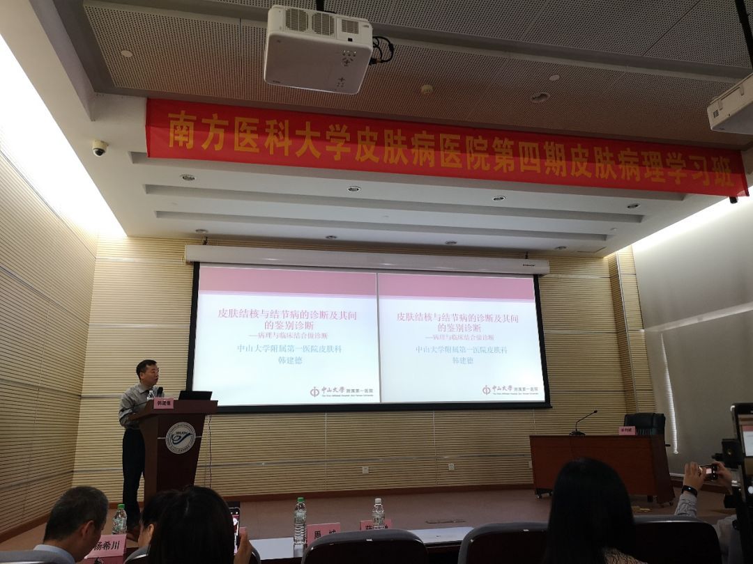 南方医科大学皮肤病医院薛汝增副主任医师详细讲解“组织细胞肿瘤”和“汗腺来源肿瘤”,学员们通过学习各种肿瘤的临床和病理表现,开阔了诊断思路。