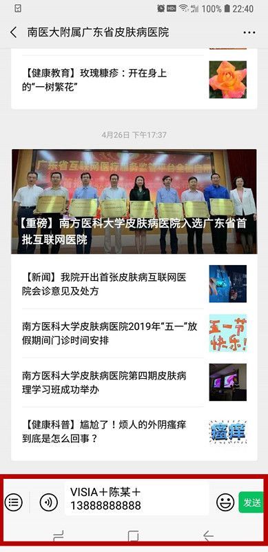 关注“南医大附属广东省皮肤病医院”或“南方医科大学皮肤病医院医美中心”微信公众号,输入“VISIA+姓名+手机号码”就能报名参加活动,如下截图;或者拨打手机号18302040184报名,联系人:李小姐。