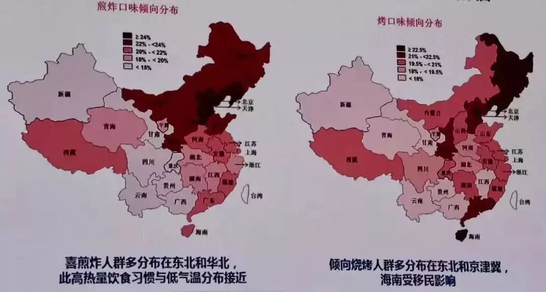 而高纬度地区居民倾向于食用煎炸食品,尤其是冬季寒冷地区的居民喜欢煎炸食品,如东北和华北地区。