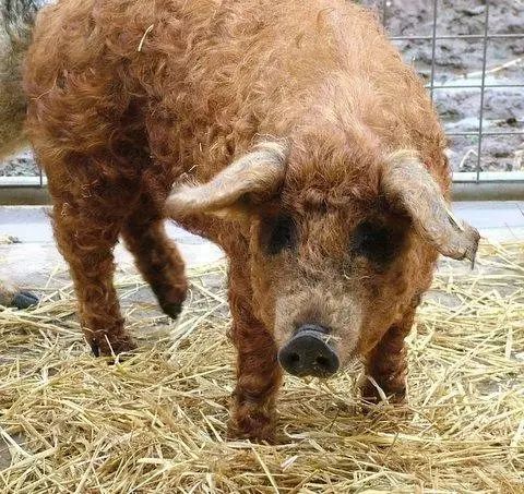 这种长相的猪估计都能当猪界的王子了。满身的小卷毛,真像绵羊的近亲啊~