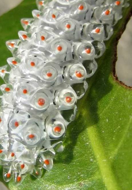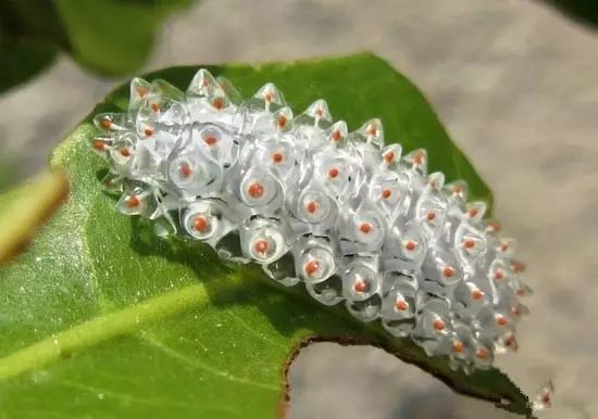 没有毛毛的毛毛虫,你还害怕吗?这种毛毛虫生活在中美和南美的热带雨林里,就像一串串的宝石挂在树上。