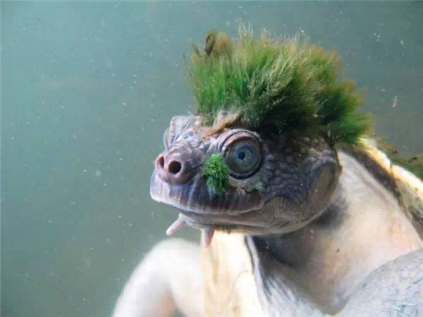 生活在澳洲的玛丽河里,极其罕见。一头绿毛又是罕见中的奇迹,是从头上长出的水藻啦!