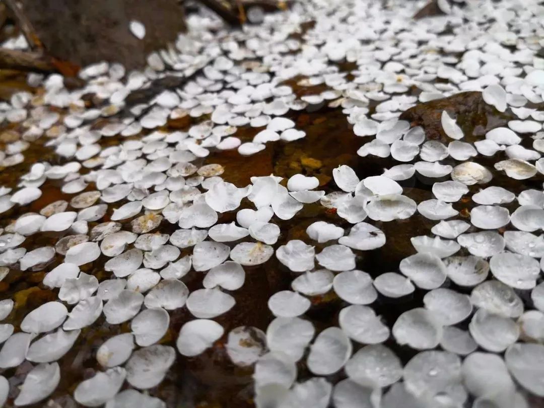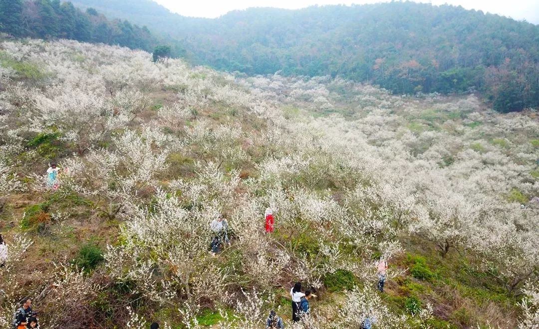 在罗浮山朱明洞景区,梅花园迎来了盛花期,远看就像覆盖了一层白雪,吸引游人驻足观赏、拍照。